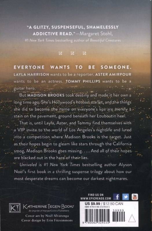 From #1 New York Times bestselling author Alyson Noël comes the first book in the Beautiful Idols series. With mystery, suspense, and an insiders-only look at Los Angeles that echoes Gossip Girl's racy and real New York, fans of Pretty Little Liars and readers who crave pulse-pounding romance will love Unrivaled.