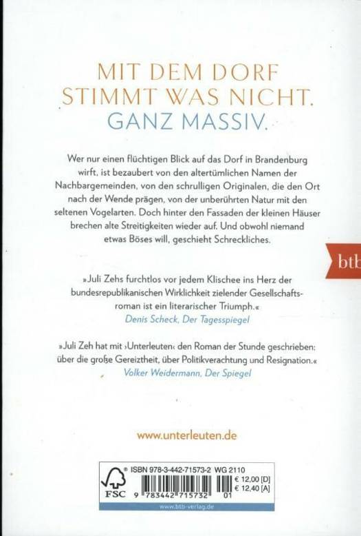 Der große Gesellschaftsroman von Juli ZehWer nur einen flüchtigen Blick auf das Dorf in Brandenburg wirft, ist bezaubert von den altertümlichen Namen der Nachbargemeinden, von den schrulligen Originalen, die den Ort nach der Wende prägen, von der unberührten Natur mit den seltenen Vogelarten. Doch hinter den Fassaden der kleinen Häuser brechen alte Streitigkeiten wieder auf. Und obwohl niemand etwas Böses will, geschieht Schreckliches.