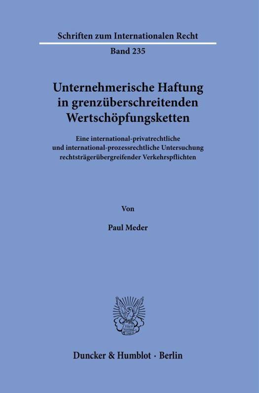 Geschadigte von unternehmerischer Tatigkeit im Globalen Suden konnen zumeist weder die gaststaatliche Konzern- oder Zulieferergesellschaft noch die entsprechende Mutter- oder Abnehmergesellschaft aus dem Globalen Norden in Anspruch nehmen. Paul Meder untersucht die fur diese Falle einschlagigen Gerichtsstande des deutschen IZPR, insbesondere 23 ZPO und die Notzustandigkeit, sowie das geltende IPR, und zeigt ihre volkerrechtlichen Grenzen auf. Darauf aufbauend diskutiert er, ob und inwiefern es rechtspolitisch wunschenswert ist, einer deutschen Gesellschaft hinsichtlich ihrer auslandischen Konzern- oder Zulieferergesellschaften deliktische Sorgfaltspflichten wie z. B. die Durchsetzung angemessener Arbeitsschutz- oder Sicherheitsstandards aufzuerlegen. Sodann unterbreitet er einen Regelungsvorschlag fur ein Wertschopfungskettengesetz, das diese Sorgfaltspflichten verpflichtend vorsieht.
