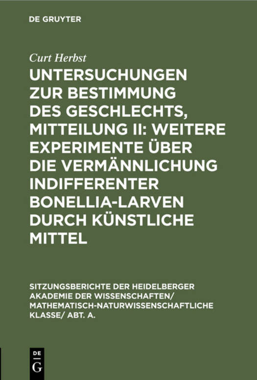 Keine ausführliche Beschreibung für "Untersuchungen zur Bestimmung des Geschlechts, Mitteilung II: Weitere Experimente über die Vermännlichung indifferenter Bonellia-Larven durch künstliche Mittel" verfügbar.