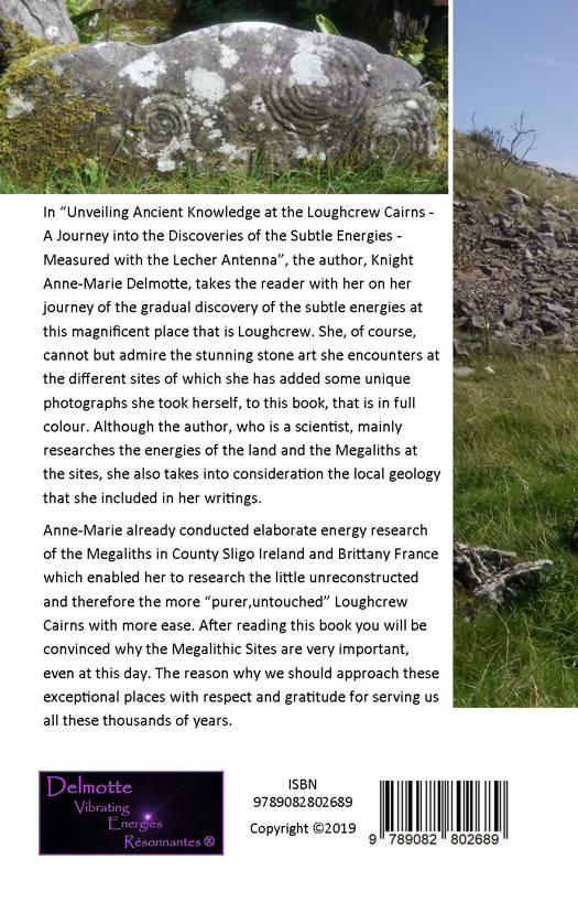 In "Unveiling Ancient Knowledge at the Loughcrew Cairns - A Journey into the Discoveries of the Subtle Energies - Measured with the Lecher Antenna", the author, Knight Anne-Marie Delmotte, takes the reader with her on her journey of the gradual discovery of the subtle energies at this magnificent place that is Loughcrew.