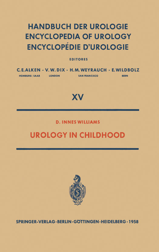 This volume is concerned with the clinical aspects of urology in childhood; the anatomy, physiology and pathology are discussed only where they have a direct bearing upon the clinical problem, and for a detailed description of these aspects, and of operative technique, the reader is referred to other volumes of this series. Emphasis is laid upon the disorders peculiar to infants and children, so that diseases such as tuberculosis, the manifestations of which in the child differ little from those in the adult, receive less attention. Childhood is deemed to cease with the completion of puberty, though illustrations have sometimes been taken from adolescent cases. The personal views expressed in this work are based upon experience at The Hospital for Sick Children, Great Ormond Street, at St. Peter's and St. Paul's Hospitals, and at the Institute of Urology, University of London. I am deeply indebted to all my colleagues and assistants at these institutions for their help and co-operation both in the trea.tment of cases and in the preparation of this volume. I would particularly wish to thank Mr. T. T. TwrSTINGTON HIGGINS for introducing me to the urology of childhood, Drs. M. BODIAN, R. C. B. PUGH and L. L. R. WHITE for their assistance in matters of pathology, and for preparing specimens for illustration, Dr. "\V. W. PAYNE for his advice on biochemistry, Dr.