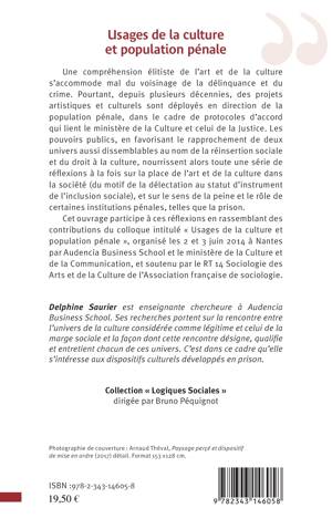 Une compréhension élitiste de l'art et de la culture s'accommode mal du voisinage de la délinquance et du crime. Pourtant, depuis plusieurs décennies, des projets artistiques et culturels sont déployés en direction de la population pénale. Les pouvoirs publics nourrissent toute une série de réflexions à la fois sur la place de l'art et de la culture dans la société, et sur le sens de la peine et le rôle de certaines institutions pénales, telles que la prison.