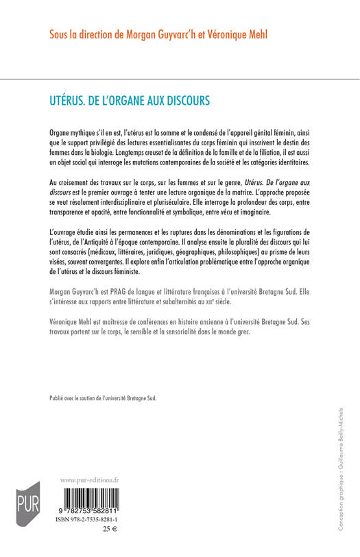 Au croisement des travaux sur le corps, sur les femmes et sur le genre, Utérus. De l'organe aux discours est le premier ouvrage à tenter une lecture organique de la matrice. L'approche proposée se veut résolument interdisciplinaire et pluriséculaire. Elle interroge la profondeur des corps, entre transparence et opacité, entre fonctionnalité et symbolique, entre vécu et imaginaire.