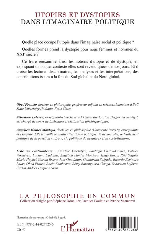 Quelle place occupe l'utopie dans l'imaginaire social et politique ? Quelles formes prend la dystopie pour nous femmes et hommes du XXIe siècle ? Ce livre réexamine ainsi les notions d'utopie et de dystopie, en expliquant dans quel contexte elles sont revendiquées de nos jours. Et il croise les lectures disciplinaires, les analyses et les interprétations, des contributions issues à la fois du Sud global et du Nord global.