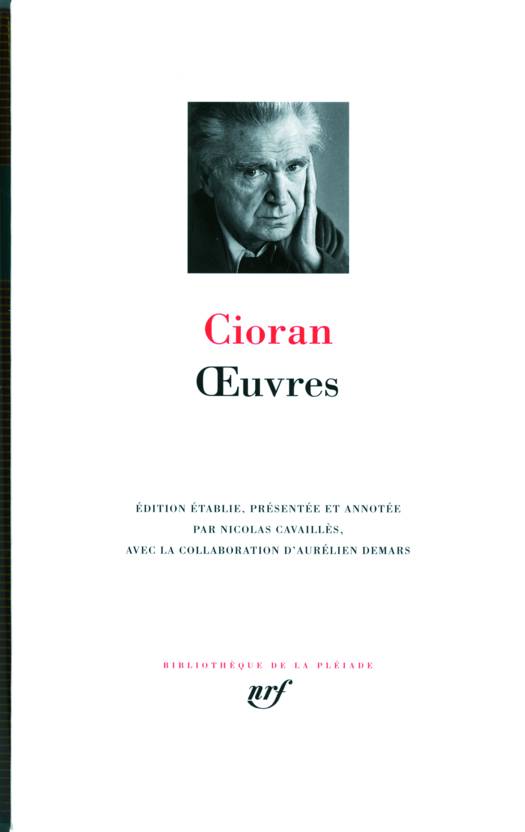 "Ce volume rassemble tous les ouvrages rédigés et publiés par Cioran en langue française. Le fossé qui sépare de ce corpus essentiel les oeuvres roumaines antérieures n'est pas seulement linguistique, spatial ni temporel : à la métamorphose complexe de la pensée en exil s'ajoutent, dès Précis de décomposition (1949), un nouvel art d'écrire, de nouvelles exigences stylistiques et un nouvel horizon éditorial, dont Cioran ne se départira pas. On n'entend évidemment pas nier l'existence ni l'importance de l'oeuvre roumaine. Il s'agit bien plutôt de respecter l'unité naturelle et puissante du corpus français, qui avait déjà rendu Cioran lui-même très réticent devant l'idée que l'on traduisît dans sa langue d'adoption ses textes roumains. Le lecteur trouvera ici les dix oeuvres par lesquelles Emil Cioran, devenu E.M. Cioran, écrivain français, s'imposa comme Cioran, l'un des plus brillants stylistes du XXᵉ siècle. Il n'eut jamais aucun plan d'oeuvre général ; il avança de texte en texte au gré de ses chaotiques nécessités intérieures, prenant seulement le soin, en des temps de plus en plus espacés au fil des années, de réunir ses écrits isolés dans des volumes cohérents. Syllogismes ou pensées, arrêts ou confessions, examens thématiques ou divagations désinvoltes - que disent ces textes de leur auteur ? ne faudrait-il pas qu'il soit philosophe, lui qui n'évolue que dans le présent des sentences ? mais ne se contredit-il pas trop, pour un raisonneur, ne serait-il pas plutôt l'écrivain rassemblant des points de vue, sinon des personnages multiples et différents ? il ne parle pourtant que de lui-même, tout le temps, quand bien même il commenterait la misère de l'homme, les avantages du squelette ou la pierre de Caillois : n'est-ce pas là le fait d'un poète ? et pourtant, ce serait un poète oeuvrant contre son propre lyrisme, pour le renoncement au moi, une manière de moine rongé par son égotisme verbeux : est-ce encore envisageable ?... On perdrait ainsi beaucoup de temps à tâcher de dissoudre Cioran dans une solution générique ad hoc. N'étant ni ceci ni cela, et tout à la fois, il présente jusque dans cette complexité de nature une attitude récalcitrante et originale, libre comme l'est toute solitude. Les poches soigneusement délestées de toute illusion de pouvoir, de mérite ou de valeur, Cioran réfléchit à sa vie comme à l'existence dans sa totalité, car l'inconvénient d'être né n'est qu'un succédané d'un désagrément plus vaste encore - qu'il y ait quelque chose plutôt que rien." Nicolas Cavaillès.
