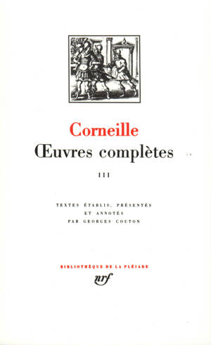 "Ce tome III, c'est Corneille qui revient au théâtre après l'avoir abandonné. À plus de cinquante ans, il a envie de se mesurer au vieux Sophocle. Seulement, chez Corneille, la solitude n'est plus un tête-à-tête avec le destin. Corneille nous donne un Œdipe qui, comme Pertharite huit ans plus tôt, pivote sur la scène V de l'acte IV. Dans les deux cas, toute la pièce est faite pour ce dialogue d'un couple au fond du puits. Il n'y a pas d'autre fatalité que les circonstances, mais elles font découvrir à deux êtres la terrible dimension de leur amour. Tout différent, Sertorius est dominé par l'entrevue des deux chefs ennemis. Ils s'admirent l'un l'autre sans rien se concéder qu'utilement. Jamais on ne nous a si bien montré ce que pourrait être la grande politique. Othon, au contraire, nous fait prendre conscience de la réalité de la vie sociale. Chacun y est condamné à l'ambition, sous peine de mort. Mais personne ne peut arriver à rien sans l'aide d'autrui. Or chacun de nos alliés est un rival, et nous passons notre vie à nous garantir contre un associé par un autre non moins dangereux. On ne peut s'empêcher de comparer Tite et Bérénice à la Bérénice de Racine. Dans Racine, dont le talent est tout d'exécution, comme dirait Bonaparte, les rencontres des personnages ne servent qu'à déployer la fluctuation des sentiments. Mais dans Corneille on voit agir deux hommes et deux femmes, et on comprend alors ce qui fait la singularité de tout Corneille : les personnes n'y existent que les unes par les autres. Ce qu'elles disent et ce qu'elles font s'adresse toujours attentivement à quelqu'un, tandis que chez Racine les passions dévorent des personnages qui ne se heurtent entre eux qu'en aveugles. Corneille saura encore nous surprendre quand, avec Suréna, il tirera de sa langue restée nerveuse un chant d'une mélancolie unique en français. Ce duo d'un amour impossible est d'autant plus émouvant que les amants restent lucides et maîtres de soi. Ce n'est là nommer que quelques sommets des vingt dernières années de Corneille, dont on va trouver ici, dans leur diversité, d'autres pièces encore et des poèmes, des discours, des lettres, des traductions, des prises de position, bref tout ce qu'on a de cet homme secret. Mais les sommets que je dis sont peut-être les plus étonnants d'une oeuvre pourtant assez invulnérable pour être encore, en partie, future, contrairement à ceux de nos chefs-d'oeuvre qui, même parmi les plus modernes, sont déjà épuisés." Jean Grosjean.