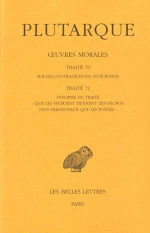 La reflexion sur le stoicisme, occupe, chez Plutarque, une place beaucoup plus importante que ne le laissent supposer les ecrits d'orientation aristotelicienne que nous avons conserves: des huit ecrits expressement diriges contre les Stoiciens, seuls trois nous sont parvenus. A ceux-ci s'ajoutent les opuscules consacres, en tout ou en partie, a une refutation des doctrines stoiciennes, sans que leur titre l'indique explicitement, comme c'est le cas, par exemple, pour le traite Sur la vertu ethique. Dans les deux traites, Sur les contradictions stoiciennes et Synopsis du traite Que les stoiciens tiennent des propos plus paradoxaux que les poetes, Plutarque se prend au jeu de la critique litteraire et philosophique, en citant et en refutant point par point les theories du Portique. Le Sur les contradictions stoiciennes se propose de chercher, dans le texte de Chrysippe, les propositions contradictoires en les citant, et, par consequent, constitue pour nous une source majeure pour la connaissance des textes, aujourd'hui perdus, du philosophe. Le Synopsis du traite Que les stoiciens tiennent des propos plus paradoxaux que les poetes compare la figue du sage stoicien a celle des heros de la poesie, tel qu'Ulysse ou Heracles, en montrant que ce sage ideal n'a pas meme cette coherence dans l'invraisemblable que l'on peut trouver dans les fictions des poetes. Notre edition regroupe en un volume ces deux traites et fournit, dans une notice eclairante, tous les elements necessaires a la comprehension des dogmes auxquels Plutarque se refere. La question des sources est abordee, de meme que le probleme relatif a la place, dans l'oeuvre de Plutarque, de ces deux traites. L'histoire de la tradition manuscrite est relatee de maniere synthetique. Des notes accompagnent la lecture et sont assorties, en fin d'ouvrage, d'un abondant commentaire.