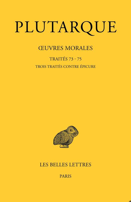 Les trois textes du present volume (Contre Colotes, pour la defense des autres philosophes; Qu'a suivre Epicure il n'est meme pas possible de vivre dans le plaisir; Si l'injonction Vis cache est pertinente) forment en quelque sorte le pendant des traites anti-stoiciens 70, 71 et 72. Ils s'inscrivent dans une demarche d'etude systematique de la tradition philosophique destinee a mieux cerner la verite par la confrontation des systemes de pensee. Leur visee est a la fois heuristique et pedagogique. D'une part, l'examen critique des theses epicuriennes conforte Plutarque dans sa conviction que la cle de l'epanouissement personnel consiste a vivre au service de la societe. D'autre part, la refutation de l'adversaire l'amene a delivrer une lecon de methode en matiere de polemique. L'auteur nous fait, en effet assister d'abord avec le premier de ces trois textes a un seminaire consacre a la contestation des attaques de Colotes contre les philosophies differentes de la sienne, puis, avec le suivant, a son prolongement sur la question centrale du veritable plaisir, question abordee dans le premier et qui trouve son point d'orgue dans le troisieme. Ce dernier paracheve, de fait, la reflexion sur le caractere vital de l'action politique, un sujet effleure au debut de la discussion, mais qui au fil des deux premiers textes apparait de plus en plus comme le plus essentiel. C'est dire l'importance de ce volume: outre l'interet documentaire sur le fonctionnement de l'Ecole de Cheronee, il presente une immense valeur doxographique et devoile les principes fondamentaux de la conception plutarquienne de l'existence.