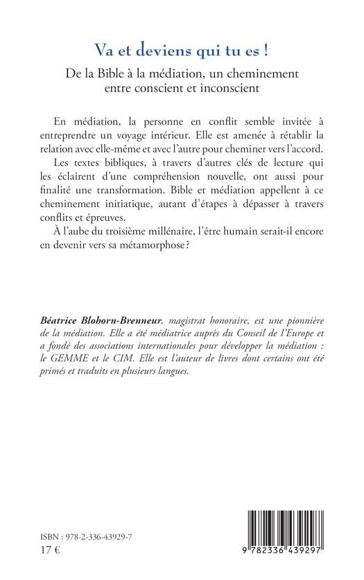 En médiation, la personne en conflit semble invitée à entreprendre un voyage intérieur. Elle est amenée à rétablir la relation avec elle-même et avec l’autre pour cheminer vers l’accord. Les textes bibliques, à travers d’autres clés de lecture qui les éclairent d’une compréhension nouvelle, ont aussi pour finalité une transformation. Bible et médiation appellent à ce cheminement initiatique, autant d’étapes à dépasser à travers conflits et épreuves. À l’aube du troisième millénaire, l’être humain serait-il encore en devenir vers sa métamorphose ?