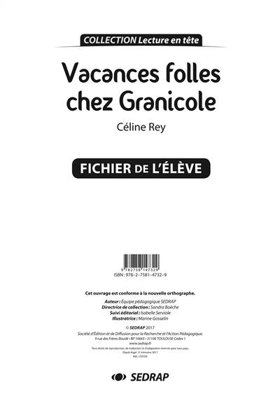 Fichier d’exploitation pédagogique du roman « Vacances folles chez Granicole », de Céline Rey. Contient des activités de compréhension autour du texte, ainsi que toutes les pistes d’exploitation pédagogique.