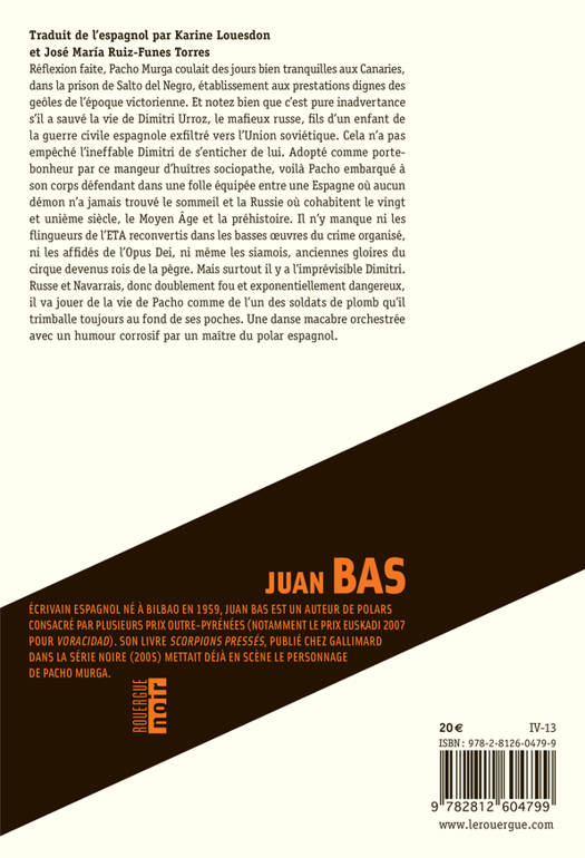 Réflexion faite, Pacho Murga coulait des jours bien tranquilles aux Canaries, dans la prison de Salto del Negro, établissement aux prestations dignes des geôles de l'époque victorienne. Et notez bien que c'est pure inadvertance s'il a sauvé la vie de Dimitri Urroz, le mafieux russe, fils d'un enfant de la guerre civile espagnole exfiltré vers l'Union soviétique. Cela n'a pas empêché l'ineffable Dimitri de s'enticher de lui. Adopté comme porte-bonheur par ce mangeur d'huîtres sociopathe, voilà Pacho embarqué à son corps défendant dans une folle équipée entre une Espagne où aucun démon n'a jamais trouvé le sommeil et la Russie où cohabitent le vingt et unième siècle, le Moyen Âge et la préhistoire. Il n'y manque ni les flingueurs de l'ETA reconvertis dans les basses oeuvres du crime organisé, ni les affidés de l'Opus Dei, ni même les siamois, anciennes gloires du cirque devenus rois de la pègre. Mais surtout il y a l'imprévisible Dimitri. Russe et Navarrais, donc doublement fou et exponentiellement dangereux, il va jouer de la vie de Pacho comme de l'un des soldats de plomb qu'il trimballe toujours au fond de ses poches. Une danse macabre orchestrée avec un humour corrosif par un maître du polar espagnol.