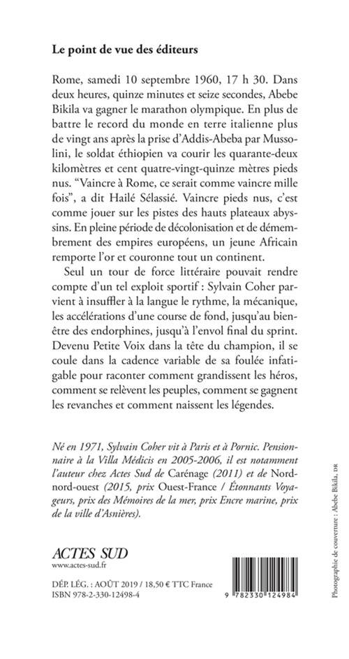 Rome, samedi 10 septembre 1960, 17 h 30. Dans deux heures, quinze minutes et seize secondes, Abebe Bikila va gagner le marathon olympique. En plus de battre le record du monde en terre italienne plus de vingt ans après la prise d'Addis-Abeba par Mussolini, le soldat éthiopien va courir les quarante-deux kilomètres et cent quatre-vingt-quinze mètres pieds nus. "Vaincre à Rome, ce serait comme vaincre mille fois", a dit Hailé Sélassié. Vaincre pieds nus, c'est comme jouer sur les pistes des hauts plateaux abyssins. En pleine période de décolonisation et de démembrement des empires européens, un jeune Africain remporte l'or et couronne tout un continent.