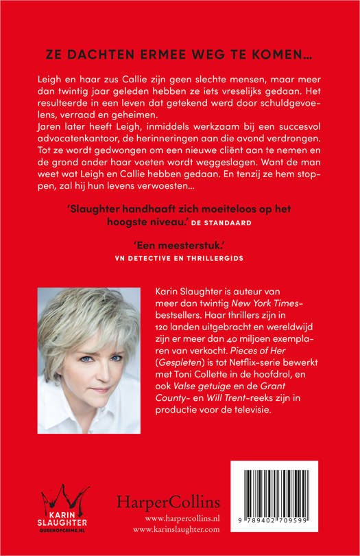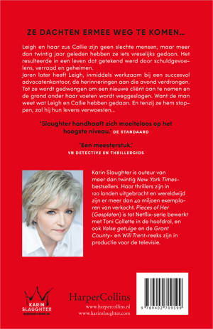 'Plotseling duikt een gedeeld geheim weer op in het leven van twee zussen, die nu de confrontatie moeten aangaan met een duistere, angstaanjagende werkelijkheid. Dit verhaal met zijn veelzijdige personages en vernuftige plot grijpt je zo aan dat je het in één adem wilt uitlezen. Slaughters allerbeste.' Camilla Läckberg