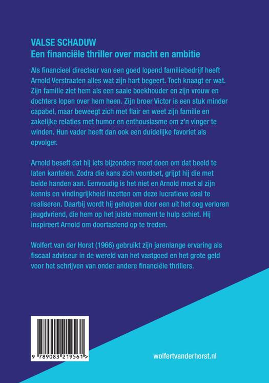 Wolfert van der Horst (1966) gebruikt zijn jarenlange ervaring als fiscaal adviseur in de wereld van het vastgoed en het grote geld voor het schrijven van onder andere financiële thrillers.