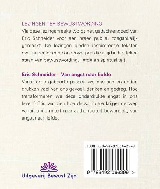 LEZINGEN TER BEWUSTWORDING Via deze lezingenreeks wordt het gedachtengoed van Eric Schneider voor een breed publiek toegankelijk gemaakt. De lezingen bieden inspirerende teksten over uiteenlopende onderwerpen die altijd in het teken staan van bewustwording, liefde en spiritualiteit.