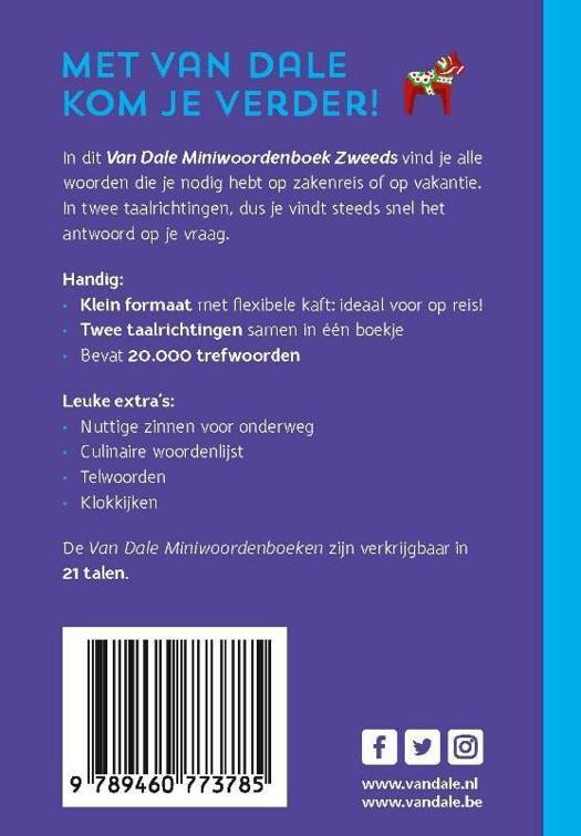 In dit Van Dale Miniwoordenboek Zweeds vind je alle woorden die je nodig hebt op zakenreis of op vakantie. In twee taalrichtingen, dus je vindt steeds snel het antwoord op je vraag.