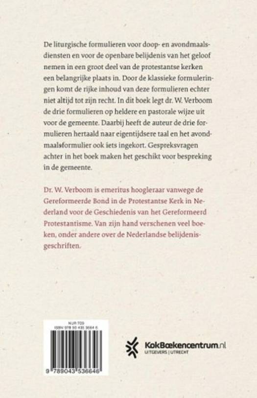 'Van doopvont naar avondmaalstafel' van W. Verboom is een handleiding voor het lezen van de liturgische formulieren, bedoeld voor de kerkelijke gemeente. De liturgische formulieren voor doop- en avondmaalsdiensten en voor openbare belijdenis nemen in een groot deel van de protestantse kerken een belangrijk plaats in. Door de klassieke formuleringen komt de rijke inhoud van deze formulieren echter niet altijd tot zijn recht. In dit boek legt dr. W. Verboom de drie formulieren op heldere en pastorale wij ze uit voor de gemeente. Daarbij heeft de auteur de drie formulieren hertaald naar eigentijdsere taal en het avondmaalsformulier ook iets ingekort. Gespreksvragen achter in het boek maken het geschikt voor bespreking in de gemeente.