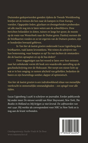 In Van hier de laatste groeten onderzoekt Lucas Ligtenberg deze briefkaarten, vaak laatste levenstekens. Wat wisten de schrijvers van hun bestemming, waar hoopten ze op? En wat dachten de omstanders die de kaarten opraapten en op de bus deden?