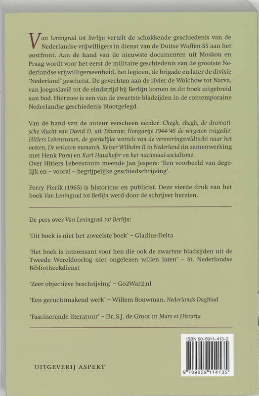 'Van Leningrad tot Berlijn' vertelt de schokkende geschiedenis van de Nederlandse vrijwilligers in dienst van de Duitse Waffen-SS aan het oostfront. Aan de hand van de nieuwste documenten uit Moskou en Praag wordt voor het eerst de militaire geschiedenis van de grootste Nederlandse vrijwilligerseenheid, het legioen, de brigade en later de divisie 'Nederland' geschetst. De gevechten aan de rivier de Wolchow tot Narva, van Joegoslavië tot de eindstrijd bij Berlijn komen in dit boek uitgebreid aan bod. Hiermee is een van de zwartste bladzijden in de contemporaine Nederlandse geschiedenis blootgelegd.