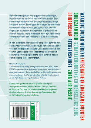 De ouderenzorg staat voor gigantische uitdagingen. Daar kunnen we het beste het hoofd aan bieden door een geïnspireerde aanpak, die je toelaat eigenzinnige keuzes te maken. Soms gaan die in tegen de heersende economische logica, maar getuigen ze wel van een degelijk en duurzaam management. In plaats van te denken dat zorg vooral maakbaar moet zijn, hebben we bovenal nood aan een raakbare zorg op mensenmaat.