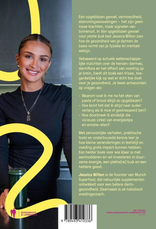 In dit inspirerende boek neemt onderneemster en voedingscoach Jessica Wilton (oprichtster Munch) je mee op haar persoonlijke reis van fastfood-junkie naar gezondheidsexpert. Door eigen ervaringen en wetenschappelijk onderbouwde inzichten laat ze zien hoe een gezond voedingspatroon, met focus op darmgezondheid, zowel fysieke als mentale transformaties teweeg kan brengen. Ze deelt praktische tips om gezonde keuzes te maken die eenvoudig te integreren zijn in je dagelijkse leven, zoals het belang van een stabiele bloedsuikerspiegel, stressmanagement, en de kracht van pre- en probiotica. Kamp je vaak met een oncomfortabel, opgeblazen gevoel, dan is dit het boek dat je wil lezen om daar voor eens en voor altijd vanaf te geraken.