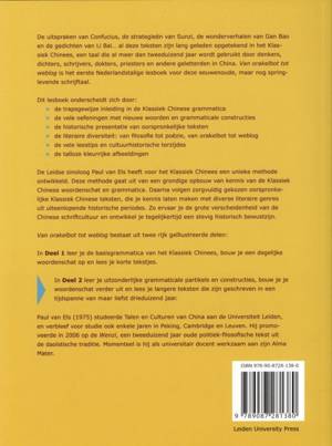 De Leidse sinoloog Paul van Els heeft voor het Klassiek Chinees een unieke methode ontwikkeld. Deze methode gaat uit van een grondige opbouw van kennis van de Klassiek Chinese woordenschat en grammatica. Daarna volgen zorgvuldig gekozen oorspronkelijke Klassiek Chinese teksten, die je kennis laten maken met diverse literaire genres uit uiteenlopende historische periodes. Zo ervaar je de grote verscheidenheid van de Chinese schriftcultuur en ontwikkel je tegelijkertijd een stevig historisch bewustzijn.