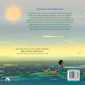 In wat voor huis woon jij? Is het klein of juist groot? Woon je er met heel veel mensen of is het meestal stil? In dit heerlijke prentenboek voor de Kinderboekenweek laten Marianne Busser en Ron Schröder kinderen door middel van grappige versjes kennismaken met heel veel verschillende huizen en de families die er wonen. Wat dacht je van een circushuis, een huis vol poezen, een woonboot, een tiny house of juist een echt kasteel? Kom maar binnen in dit boek, je bent altijd welkom!