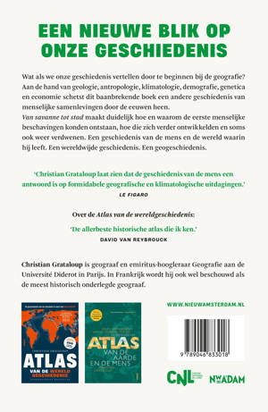 Wat als we onze geschiedenis vertellen door te beginnen bij de geografie? Aan de hand van geologie, antropologie, klimatologie, demografie, genetica en economie schetst dit baanbrekende boek een andere geschiedenis van menselijke samenlevingen door de eeuwen heen. Van savanne tot stad maakt duidelijk hoe en waarom de eerste menselijke beschavingen konden ontstaan, hoe die zich verder ontwikkelden en soms ook weer verdwenen. Een geschiedenis van de mens en de wereld waarin hij leeft. Een wereldwijde geschiedenis. Een geogeschiedenis.