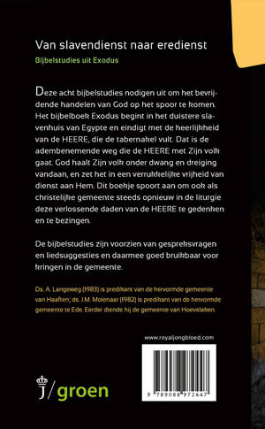 Deze acht bijbelstudies nodigen uit om het bevrijdende handelen van God op het spoor te komen. Het bijbelboek Exodus begint in het duistere slavenhuis van Egypte en eindigt met de heerlijkheid van de HEERE die de tabernakel vult. Dat is de adembenemende weg die de HEERE met Zijn volk gaat. God haalt Zijn volk onder dwang en dreiging vandaan, en zet hen in een verrukkelijke vrijheid van dienst aan Hem.