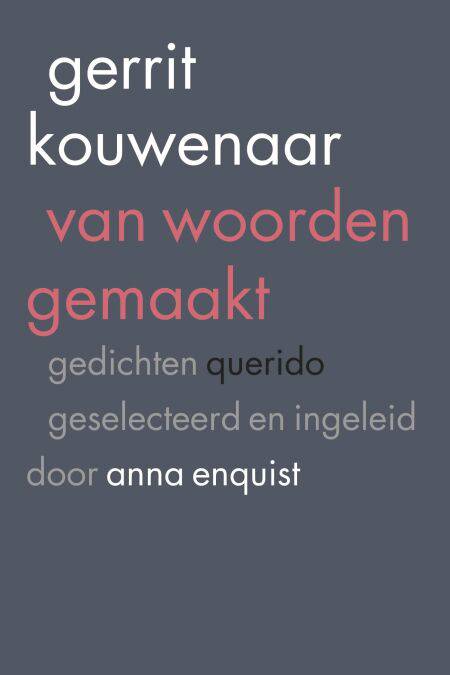 Het was vriendschap op het eerste gezicht, zo herinnert Anna Enquist zich haar kennismaking met Gerrit Kouwenaar. Ze bleven bijna een kwarteeuw goede vrienden, tot zijn dood in 2014. Om de aandacht voor zijn poëzie levend te houden selecteerde Anna Enquist de mooiste gedichten van Gerrit Kouwenaar. 'Geen literair-kritisch verantwoorde bloemlezing waarin alle aspecten van het werk aan de orde komen maar een persoonlijke selectie, gedreven door de vraag hoe Gerrit eigenlijk was en wat hij met zijn werk wilde,' schrijft ze in haar inleiding. Het resultaat, van woorden gemaakt, biedt een blik op zijn oeuvre – door haar ogen.