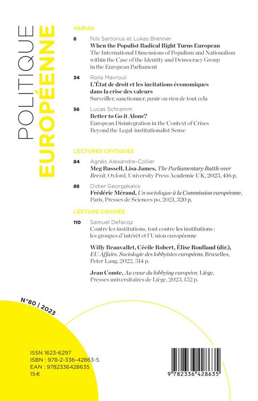 EU Affairs. Sociologie des lobbyistes européens, Bruxelles,