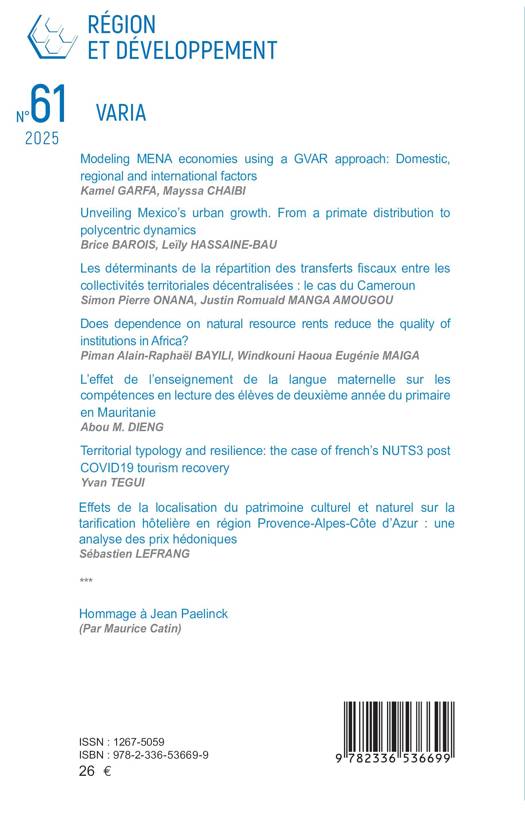 Paperback | Frans | Region Et Developpement