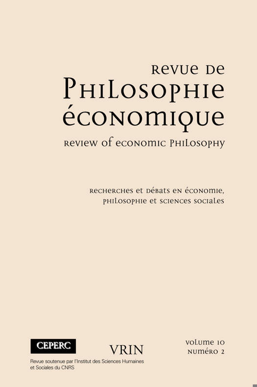 Articles: Sheila DOW, Knowledge, Communication and the Scottish Enlightenment Benoit HARDY-VALLEE et Benoit DUBREUIL, Reconcilier le formel et le causal: le role de la neuroeconomie Lars LINDBLOM, Consent, Contestability and Employer Authority Christian CORDES, Long-term Developments in Human Labor and their Political Implications recensions d'ouvrages: Karl POLANYI, Essais, textes reunis et presentes par M. Cangiani et J. Maucourant, par Benedicte ZIMMERMANN Valerie CLEMENT, Christine LE CLAINCHE et Daniel SERRA, Economie de la justice et de l'equite, par Geert DEMUIJNCK Avner GREIF, Institutions and the Path to the Modern Economy. Lessons from Medieval Trade, par Cyril HEDOIN.
