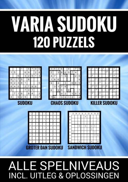 Sudoku Mix puzzelboek met maar liefst 120 puzzels van makkelijk tot moeilijk. In dit boek staan vijf sudoku varianten, namelijk: klassieke sudoku, killer sudoku, chaos sudoku, groter-dan-sudoku en sandwich sudoku. Inclusief uitleg en oplossingen. Superleuke puzzels voor urenlang puzzelplezier! En natuurlijk ook een heel origineel cadeau. Details: paperback A5 formaat met twee puzzels per pagina, totaal 81 pagina's, zwart/wit.