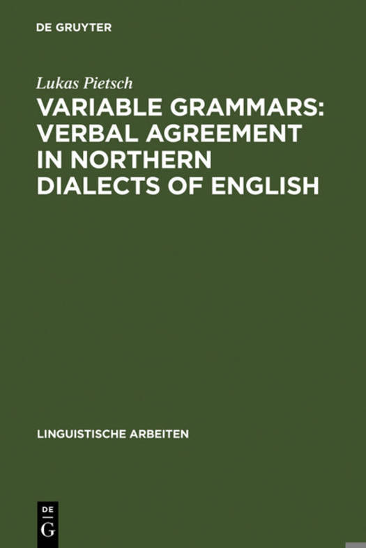The northern dialects of Britain and Ireland have verbal agreement patterns that differ radically from those of Standard English: the children is singing vs. they are singing vs. they sing and dances. This so-called 'Northern Subject Rule' (agreement with adjacent personal pronoun subjects, but invariable verbal -s everywhere else), attested since the time of Middle English, was once a consistent, categorical grammatical system in the older dialects. It continues in the modern vernaculars in the form of complex variable systems, amalgamated from traditional dialectal patterns, Standard English forms, as well as modern supraregional vernacular influences. This study explores the variable use of verbal agreement forms in Scotland, northern England and Ulster, based on data ranging from the mid-20th century »Survey of English Dialects« up to dialect recordings of the 1990s. In analysing continuities and discontinuities between the different dialects involved, it also raises questions of a theoretical nature: what are the implications of these hybrid, variable systems for a usage-based theory of grammatical competence? Die Verbkongruenz in den nördlichen britischen Dialekten weicht auffällig vom Standardenglischen ab. Doch was in älteren Formen dieser Dialekte ein in sich geschlossenes System mit kategorischer Geltung war, tritt in modernen Varietäten stets variabel und in einer Vielfalt von Mischformen auf. Die Arbeit untersucht anhand von Korpora Kontinuitäten und Unterschiede zwischen den Dialekten dieser Region und diskutiert die Bedeutung solcher hybrider, variabler Systeme für eine Theorie der grammatischen Variation.