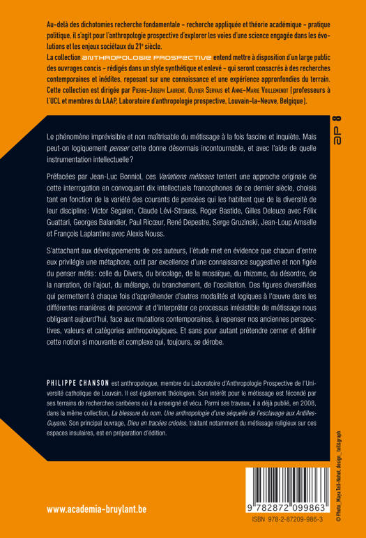 Le phénomène du métissage est ici présenté par le biais de dix intellectuels francophones de ce dernier siècle : Victor Segalen, Claude Lévi-Strauss, Roger Bastide, Gilles Deleuze (avec Félix Guattari), Georges Balandier, Paul Ricoeur, René Depestre, Serge Gruzinski, Jean-Loup Amselle et François Laplantine (avec Alexis Nouss). L'étude nous entraîne ainsi dans les diverses manières d'interpréter ce processus irréversible nous obligeant à repenser nos anciennes catégories et valeurs anthropologiques.