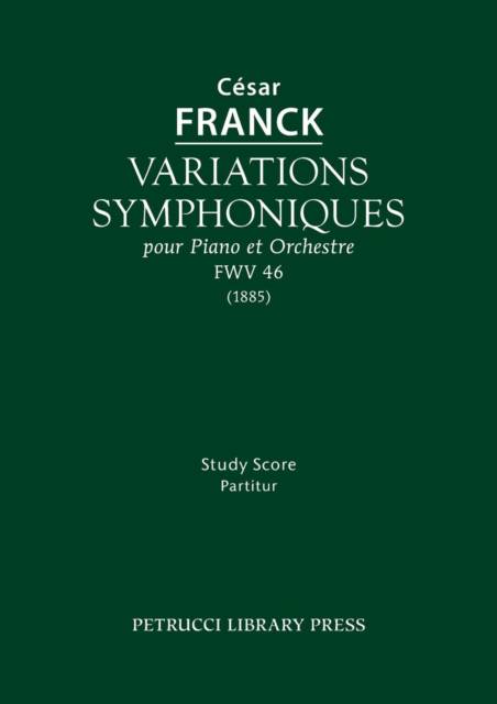 Described as one of Franck's "tightest and most finished works", the Variations symphoniques of 1885 nevertheless got off to a slow start. The premiere, given in Paris on May 1, 1886 with the famous pianist Louis Diémer as soloist and the composer at the podium, was given little notice at the time. Even a second performance in January of 1887 didn't help. Only after the composer's death and the advocacy of Franck's students D'Indy, Duparc, Chausson and Dukas was the piece accorded a spot in the repertoire. The present study score, in a large readable format, is a digitally restored reissue of the first edition published in 1893 by Enoch. Unlike so many of the on-demand scores now available, this one comes with all the pages and the images have been thoroughly checked to make sure it is readable. Matching large conductor score and orchestra parts are also available from Serenissima Music (91448).