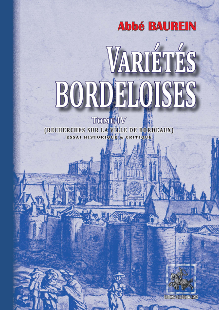 « Le livre de l’abbé Jacques Baurein est certainement un des plus instructifs et intéressants qui ait été publié sur Bordeaux et sur la Gironde... » Ainsi s’exprime le préfacier de la seconde édition de 1876. La première publication par l’abbé Baurein lui-même s’échelonna de 1784 à 1786, mais ne connut pas le succès escompté. Cette quatrième édition, basée sur celle de Féret de 1876, entièrement recomposée, veut simplement remettre à disposition du plus grand nombre un ouvrage précieux devenu introuvable ou hors de prix.