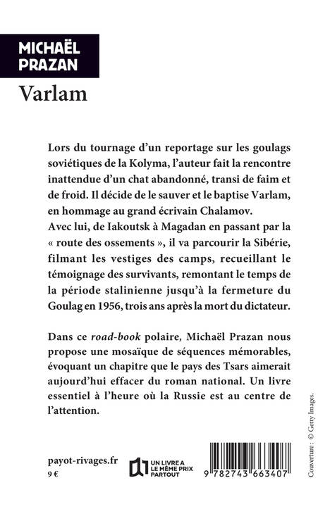 Lors du tournage d'un documentaire sur les camps du Goulag de la Kolyma, région de la Sibérie orientale que les Russes appellent « l'enfer blanc », l'auteur fait la rencontre inattendue d'un chat abandonné, transi de faim et de froid. Il décide de le sauver et le baptise Varlam, en hommage au grand écrivain Chalamov, rescapé des camps et auteur des Récits de la Kolyma. Avec lui, de Iakoutsk à Magadan en passant par la « route des ossements », il va parcourir la Sibérie, filmant les vestiges des camps, recueillant le témoignage des survivants, remontant le temps de la période stalinienne jusqu'à la fermeture du Goulag en 1956, trois ans après la mort du dictateur. Dans ce road-book polaire, Michaël Prazan nous propose une mosaïque de séquences mémorables, évoquant un des chapitres les plus sombres de l'Histoire de la Russie.
