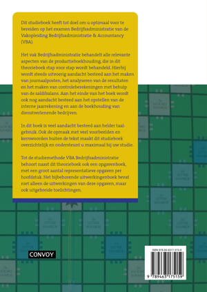 Tot de studiemethode VBA Bedrijfsadministratie behoort naast dit theorieboek ook een opgavenboek, met een groot aantal representatieve opgaven per hoofdstuk. Het bijbehorende uitwerkingenboek bevat niet alleen de uitwerkingen van deze opgaven, maar ook uitgebreide toelichtingen.