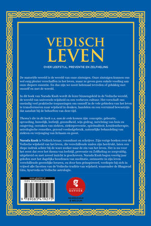 De materiële wereld is de wereld van onze zintuigen. Onze zintuigen kunnen ons wel enig plezier verschaff en in het leven, maar ze geven geen enkele voeding aan onze diepere essentie. En dus zijn we nooit helemaal tevreden of gelukkig met onszelf en met de wereld. In dit boek van Narada Kush wordt de lezer binnengeleid in de Vedische wereld, de wereld van universele wijsheid en een verheven cultuur. Het verschaft ons oneindig veel praktische toepassingen om onszelf in de vele gebieden van het leven te transformeren naar wijsheid in denken, handelen en een verruimd bewustzijn dat aansluit bij de behoeften van deze tijd. Thema's die in dit boek o.a. aan de orde komen zijn: conceptie, geboorte, opvoeding, huwelijk, leefstijl, gezondheid, wijs gedrag, inrichting van huis en omgeving, oorzaken van ziekten, ziektepreventie, spiritualiteit, kruidentherapie, astrologische remedies, gezond voedselgebruik, natuurlijke behandeling van ziekten en verjonging van lichaam en geest. Narada Kush is Vedisch leraar, consultant en schrijver. Zijn vorige boeken over de Vedische wijsheid van het leven, die verschillende malen zijn herdrukt, laten een diepe indruk achter bij de ware zoeker naar de zin van het leven. Het is nu voor het eerst dat over het thema van leefstijl, preventie en Zelfheeling zo zorgvuldig, uitgebreid en met zoveel inzicht is geschreven. Narada Kush begon veertig jaar geleden met het dagelijks beoefenen van meditatie, ontmoette in zijn leven verschillende geestelijke leraren, en door hen geïnspireerd, verdiepte hij zich in vrijwel alle facetten van de Vedische traditie van wijsheid, waaronder de Bhagavad Gita, Ayurveda en Vedische astrologie.