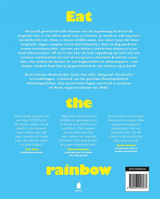 Na het succes van 'Vegan soul food' én 'Vegan party food' is Jason Tjon Affo terug met 'Vegan rainbow food'. In dit kleurrijke vegan kookboek leer je gezond te koken met alle kleuren van de regenboog. Door verschillende ingrediënten te gebruiken die allemaal van nature een andere kleur hebben, laat Jason zien hoe je zoveel mogelijk voedzame voedingsstoffen binnenkrijgt, en dat in één gerecht. Zo wordt jouw vegan maaltijd niet alleen voedzaam, maar ook superlekker. Van de ultieme rainbow sushibowl tot een overheerlijke matchacake: elk recept laat gegarandeerd de zon schijnen op je bord. 'Vegan rainbow food' is daarom een onmisbaar kookboek voor iedereen die overheerlijk en kleurrijk vegan eten wil ontdekken.