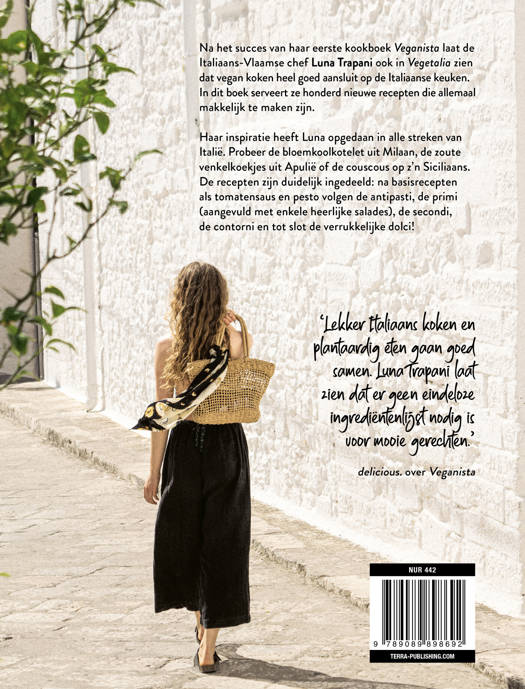 Na het succes van haar eerste kookboek Veganista laat de Italiaans-Vlaamse chef Luna Trapani ook in Vegetalia zien dat vegan koken heel goed aansluit op de Italiaanse keuken. In dit boek serveert ze honderd nieuwe recepten die allemaal makkelijk te maken zijn.