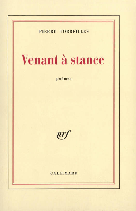 À la parution de Denudare, Angelo Rinaldi écrivait : "Était-ce encore possible ? Un poète résolument contemporain adossé aux plus savantes recherches de langage, et pourtant d'accès immédiat accrochant directement la sensibilité du lecteur ? Pierre Torreilles tient ce pari qui semblait relever de l'absurde, et se dégage de tous les pièges présents à chaque phrase, avec une sincérité brûlante." Pari tenu et maintenu, sans faille ni concession. L'an dernier prix Max Jacob. Voici, dernier paru, Venant à stance, ouvrant sur une citation de Rilke : "Partout, la temporalité s'abîme dans la profondeur de l'être." Lorsque la pensée en chemin s'accorde au rythme du langage, elle prend au sérieux le temps dans la forme de la parole... et, lecture-écriture la voix laisse advenir le poème. Harmonique. En cela favorable à l'écoute. Sans cesse répété s'élève le thème, puis semblable au ressac dévoile et voile alors la transparence de l'oubli.