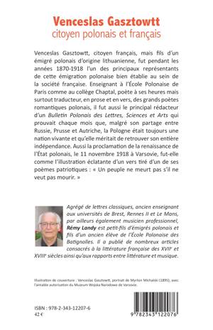 Venceslas Gasztowtt, citoyen français fils d'un émigré polonais d'origine lithuanienne, fut pendant les années 1870-1918 l'un des principaux représentants de cette émigration polonaise bien établie au sein de la société française. Enseignant à l'École polonaise de Paris, au collège Chaptal, poète à ses heures mais surtout traducteur, en prose et en vers, des grand poètes romantiques polonais, il fut le principal rédacteur d'un Bulletin Polonais des Lettres, Sciences et Arts.