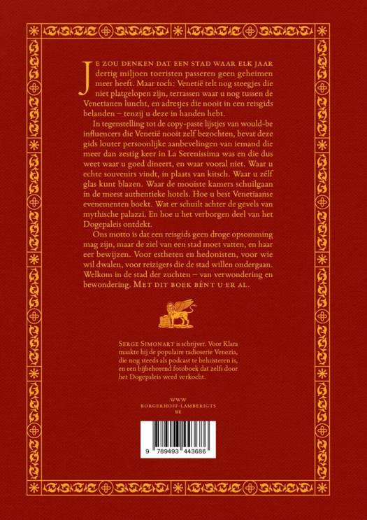 In tegenstelling tot de copy-paste lijstjes van would-be influencers die Venetië nooit zelf bezochten, bevat deze gids louter persoonlijke aanbevelingen van iemand die meer dan zestig keer in La Serenissima was. Iemand die uit ervaring weet waar u goed dineert, en waar vooral niet. Waar u echte souvenirs vindt, in plaats van kitsch. Waar u zélf glas kunt blazen. Waar de mooiste kamers schuilgaan in de meest authentieke hotels. Welke Venetiaanse topevenementen u niet mag missen en hoe u ze best boekt. Wat er schuilt achter de gevels van mythische palazzo's. En hoe u, op het juiste moment, via de juiste ingang, het verborgen deel van het Dogepaleis ontdekt.