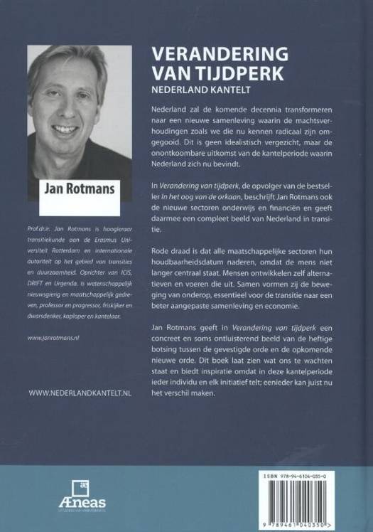 In 'Verandering van tijdperk', de opvolger van de bestseller 'In het oog van de orkaan', beschrijft Jan Rotmans ook de nieuwe sectoren onderwijs en financiën en geeft daarmee een compleet beeld van Nederland in transitie.