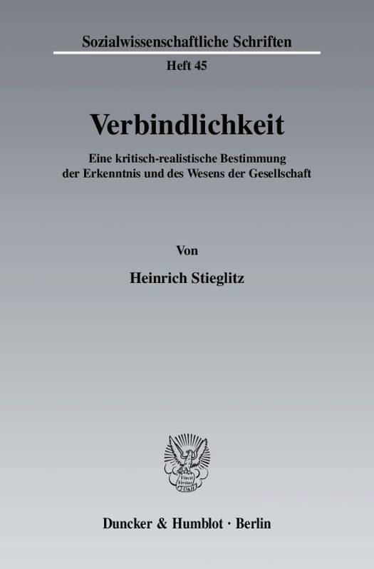 Heinrich Stieglitz unternimmt es, das Verhältnis der gesellschaftsphilosophischen und der soziologischen Seinserkenntnis aus dem einheitlichen Grund der Gesellschaft zu bestimmen. Dieser besteht als Sozialität, d. h. als Verbindlichkeit unter Menschen. Das Verbundensein als Gestaltungsziel wird in der Realität nicht immer erreicht. Die Verwirklichung einer Gesellschaft kann sozial, asozial, unsozial oder sogar antisozial sein. Diese Bestände können sodann schwanken zwischen den Polen einer Gesellschaft als etwas Besonderem oder etwas Allgemeinem, als einer Innen- oder einer Außenwelt sowie als einem Sinngehalt oder einer bloßen Tatsächlichkeit. Die genannten Gestaltungsvollzüge beim Namen zu nennen, erweist sich als die kritische Aufgabe einer realistischen Erkenntnis der Gesellschaft.