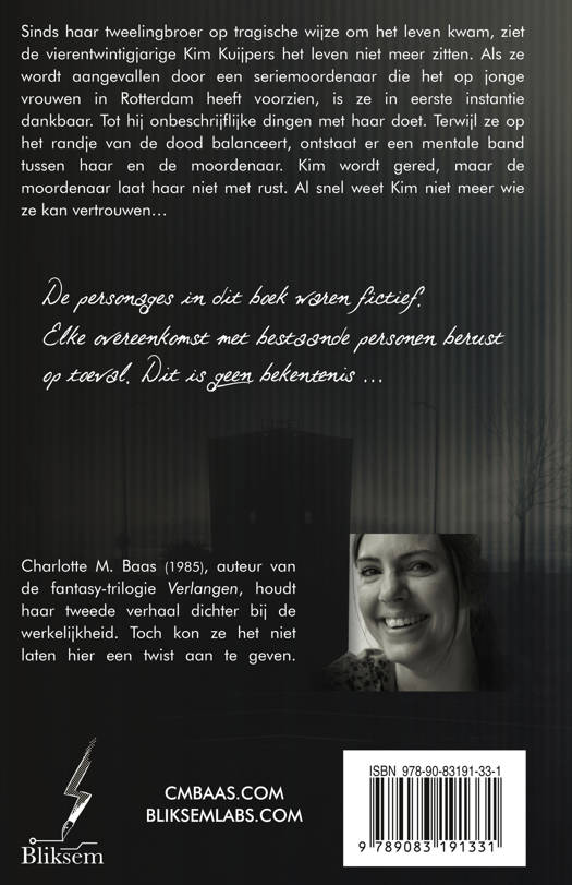 Sinds haar tweelingbroer op tragische wijze om het leven kwam, ziet de vierentwintigjarige Kim Kuijpers het leven niet meer zitten. Als ze wordt aangevallen door een seriemoordenaar die het op jonge vrouwen in Rotterdam heeft voorzien, is ze in eerste instantie dankbaar. Tot hij onbeschrijflijke dingen met haar doet.